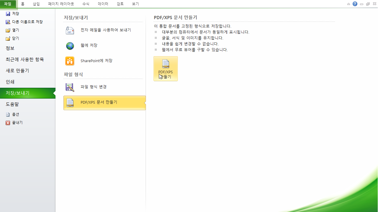 엑셀에서 pdf파일로 저장하는 방법은?