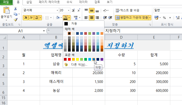 글꼴 색상은 파랑색