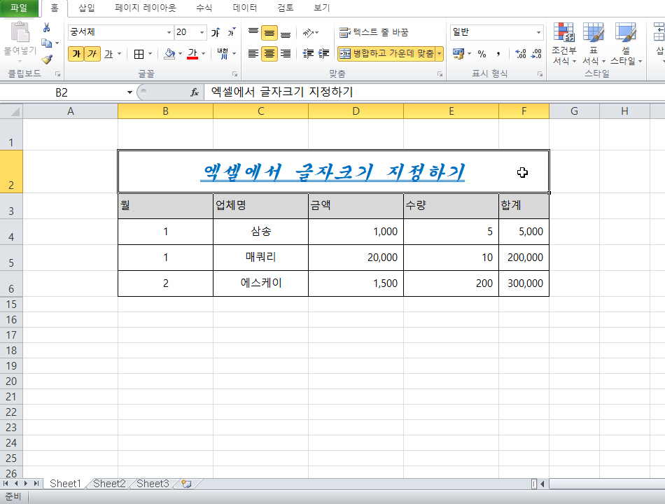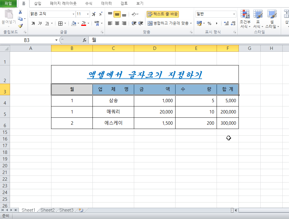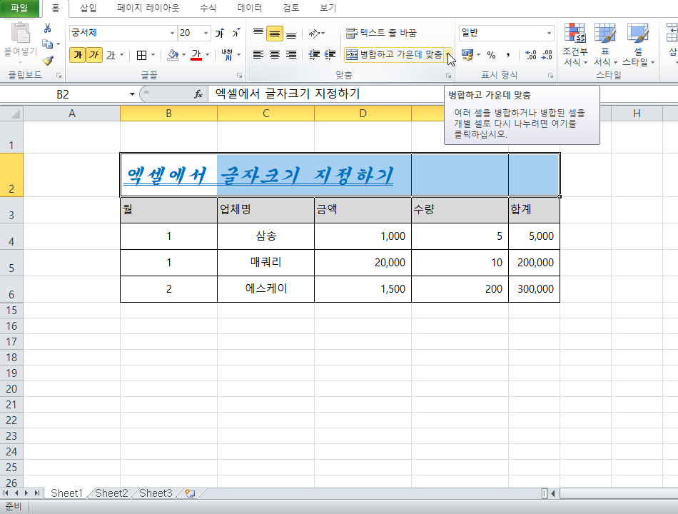 셀 병합하고 텍스트 가운데 정렬하기
